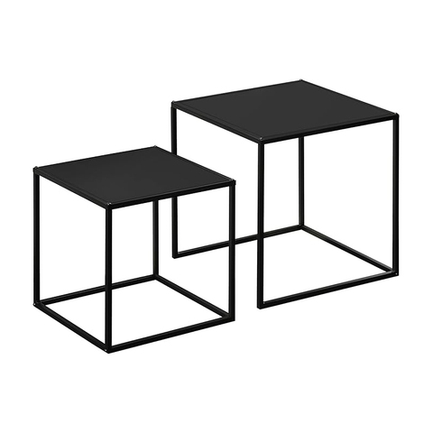 Дешевая Гостиная декоративный черный Штабелируемый Квадратный маленький металлический журнальный столик набор