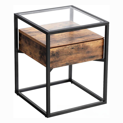 Современный квадратный черный металлический столик со стеклянным верхом, столик для чая, журнальный столик с деревянным ящиком для гостиной, спальни